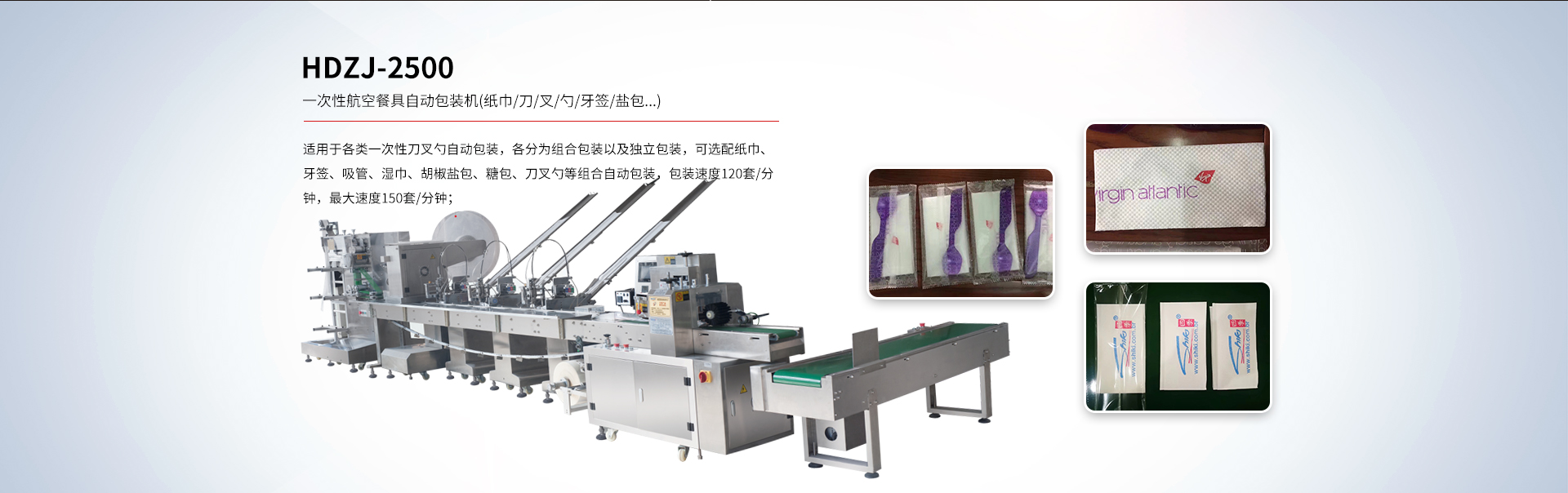 HDZJ-2500 一次性航空餐具自動(dòng)包裝機(jī)(紙巾/刀/叉/勺/牙簽/鹽包...)